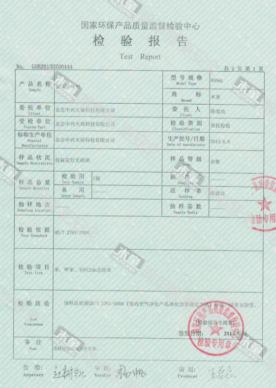 木童家具甲醛清除劑皮膚安全性檢測報告